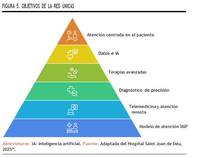 La Red Únicas, impulsada en 2023 por el Hospital Sant Joan de Déu (SJD) y la Federación Española de EERR (FEDER), reúne a 30 hospitales para mejorar la atención pediátrica en EERR mediante un modelo colaborativo que incorpora arquitecturas de datos federados. SJD ha consolidado un enfoque asistencial innovador, reforzado por acreditaciones europeas y la creación de la Casa de Sofía, además de iniciativas como ÚNICAS Talks para implicar a las familias.