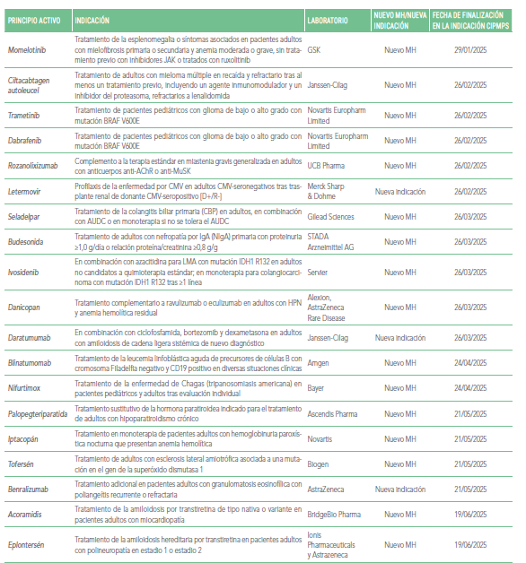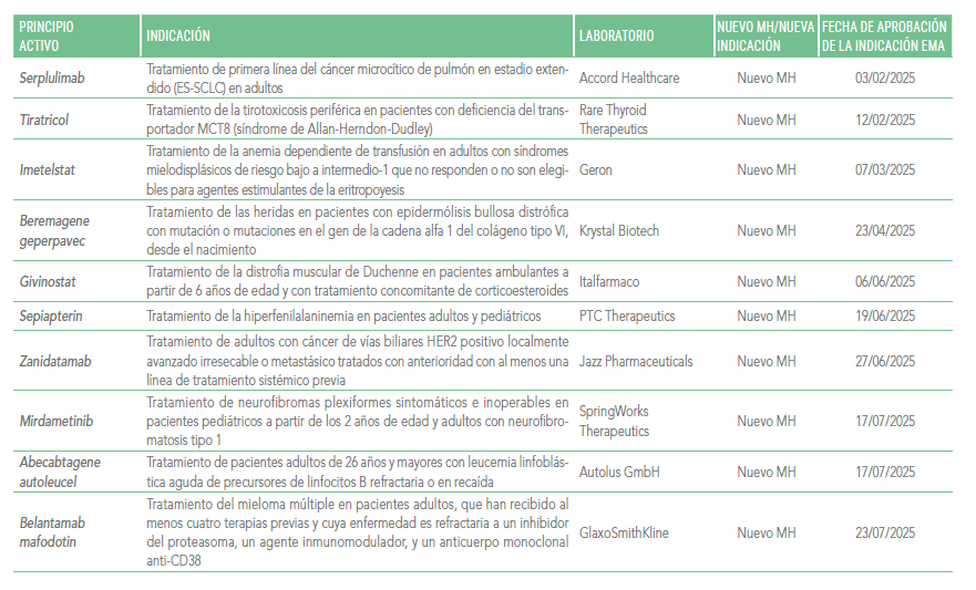 MEDICAMENTOS HUÉRFANOS E INDICACIONES APROBADAS POR LA EMA DESDE ENERO HASTA AGOSTO DE 2025