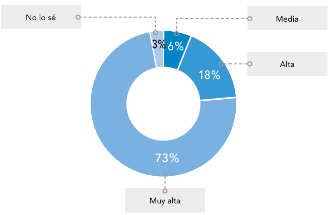 Solo un 6% (n=2) la percibe como de prioridad media y un 3% (n=1) indicó no saberlo, mientras que ningún encuestado señaló prioridad baja o muy baja (Figura 3).