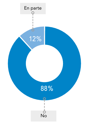 La tercera pregunta evaluó si los encuestados consideran que el enfoque actual de los sistemas de salud integra adecuadamente los determinantes sociales en el manejo de las personas con enfermedades raras. La mayoría de los participantes (88%; n=30) considera que no se tienen suficientemente en cuenta, mientras que un 12% (n=4) opina que solo se consideran “en parte”. Ningún encuestado indicó que los sistemas actuales sí los contemplen completamente (Figura 4).